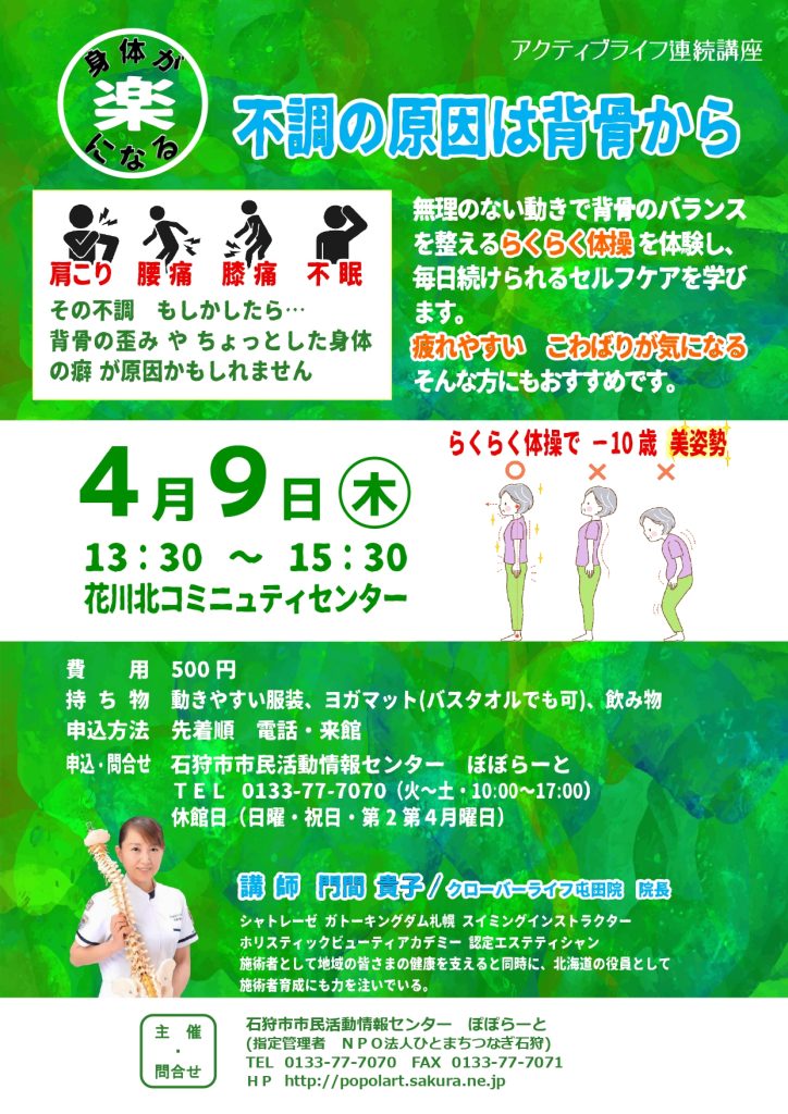 2026年3月24日 / 最終更新日時 : 2026年3月24日 ぽぽらーと イベント情報 アクティブライフ連続講座 身体が楽になる 不調の原因は背骨から Follow me! FacebooktwitterHatenaPocketCopy